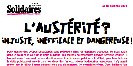 Pour l’Union syndicale Solidaires, combattre et empêcher la mise en œuvre d’une politique d’austérité est une nécessité absolue. Pour y parvenir, il faut mobiliser plusieurs arguments.