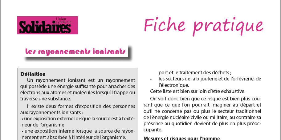 Fiche pratique sur les rayonnements ionisants