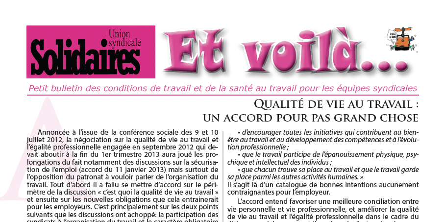 page 1 : Qualité de vie au travail : un accord pour pas grand chose