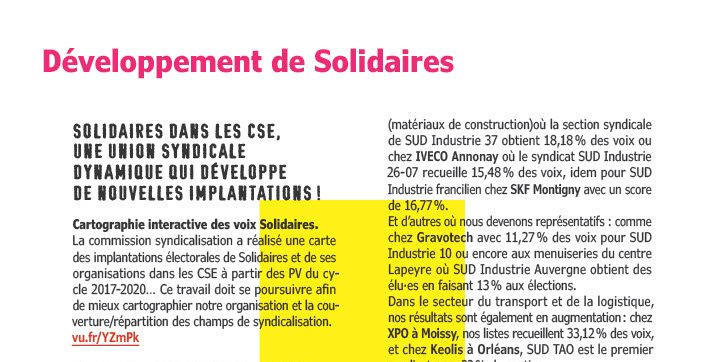 Et d’autres où nous devenons représentatifs : comme chez Gravotech avec 11,27% des voix pour SUD Industrie 10 ou encore aux menuiseries du centre Lapeyre où SUD Industrie Auvergne obtient des élu·es en faisant 13% aux élections.