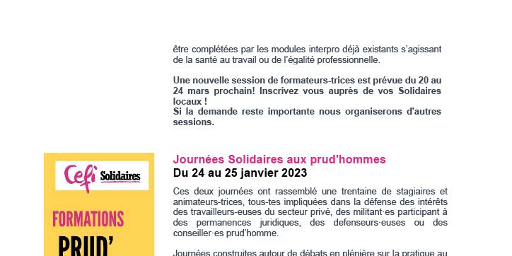 Afin de développer les formations interpros dans vos départements et régions et de proposer de nombreuses formations à nos militant·es et adhérent·es, n'hésitez pas à vous y inscrire !