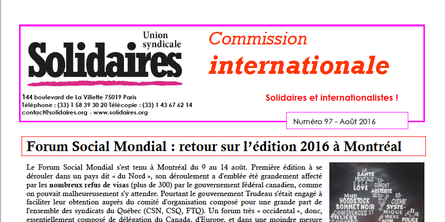 - Forum Social Mondial : retour sur l’édition 2016 à Montréal