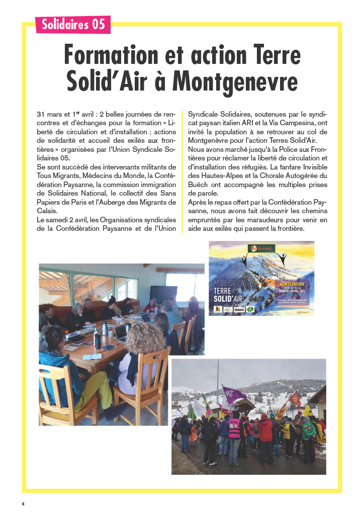 Syndicale Solidaires, soutenues par le syndicat paysan italien ARI et la Via Campesina, ont invité la population à se retrouver au col de Montgenèvre pour l’action Terres Solid’Air.