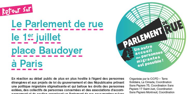 En réaction au débat public de plus en plus hostile à l’égard des personnes étrangères et aux projets de loi du gouvernement et des Républicains prônant une politique migratoire stigmatisante et qui bafoue les droits des personnes exilées, des collectifs de personnes concernées et des associations d’accompagnement et de soutien organisent un Parlement de rue pour montrer qu’une autre approche de l’accueil est possible.